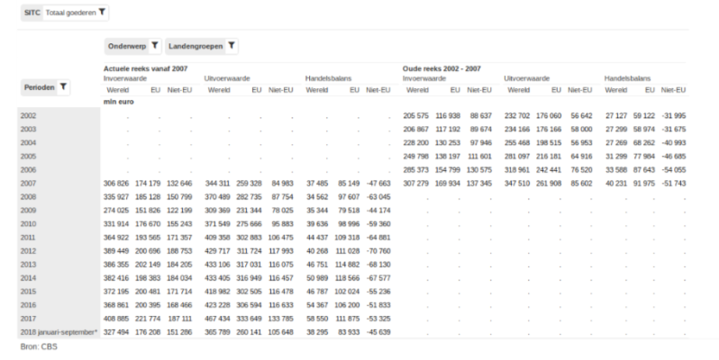 Als we naar de Nederlandse handel vanaf 2002 kijken krijgen we deze statistiek: