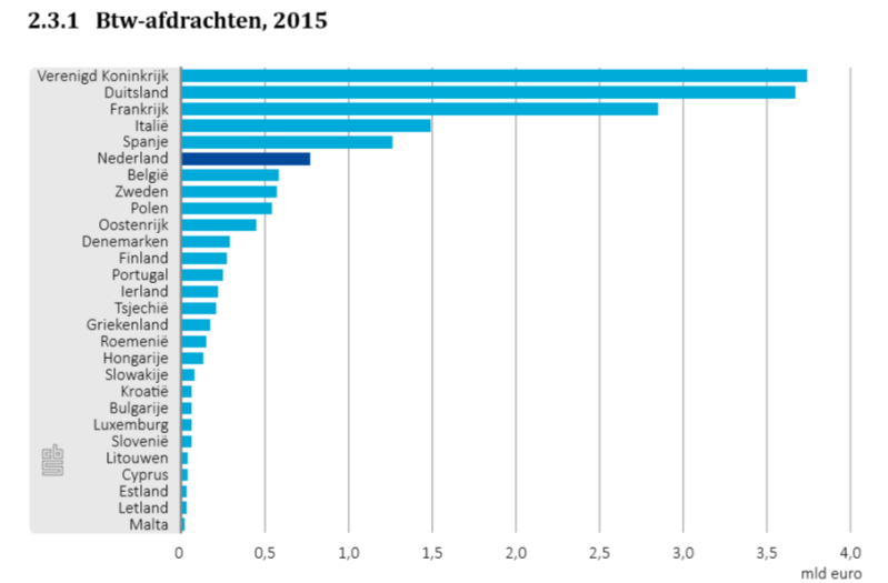 - De Btw-heffing, in het plaatje op de volgende pagina wordt er geïllustreerd hoeveel btw Nederland, ten opzichte van de andere landen, betaalt aan de EU.